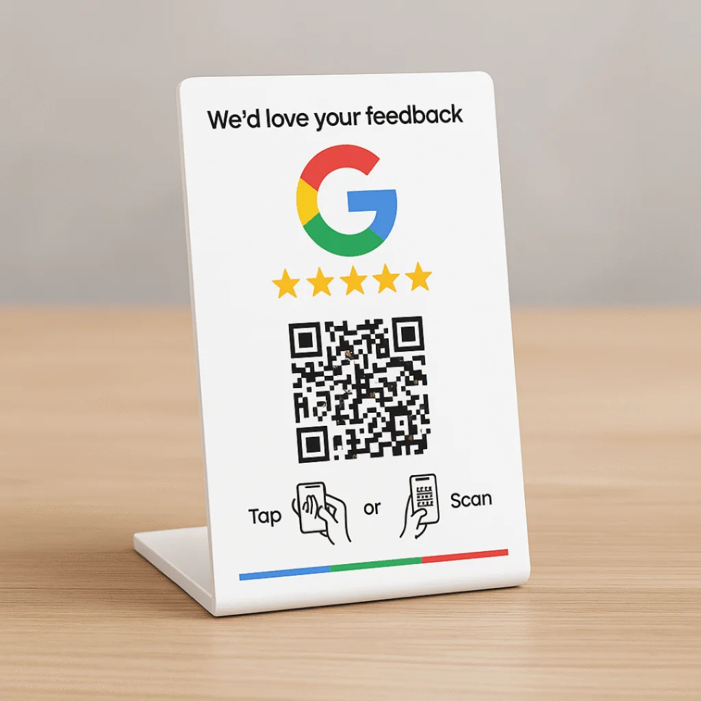 - Keep instructions simple: Clear, friendly prompts like “Loved your experience? Tap or scan to leave a review” work best.