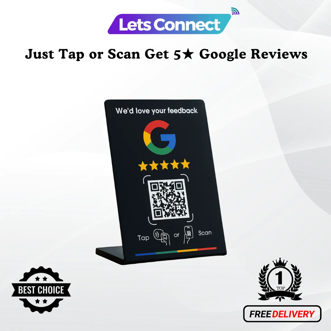 Make it effortless for customers to leave a Google review with our premium NFC + QR Google Review Stand. Perfect for counters, tables, reception desks and more – just a tap or scan sends them straight to your Google review page.